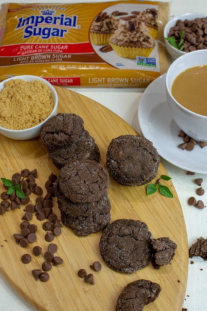 Besides the large amount of butter, silky cocoa powder and chocolate chips, it was the brown sugar in these amazing cookies that did me in. The cookies are sweetened with the most incredible Imperial Sugar Brand’s Light Brown Sugar. As soon as I opened the bag the kitchen started filling with the delicious aroma of maple. I ran my fingers through the delicate, crumbly, light as air brown sugar to release more of the sweet syrupy smell throughout my kitchen.