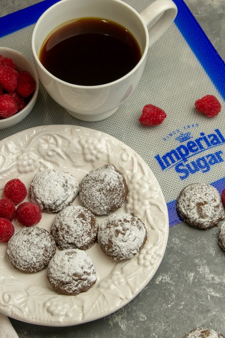 This year, I am making Chocolate Melt In Your Mouth Sugar Cookies. The recipe is simple and the coating of sifted Imperial Sugar Brand Powdered Sugar make these little cookies look like snow caps.