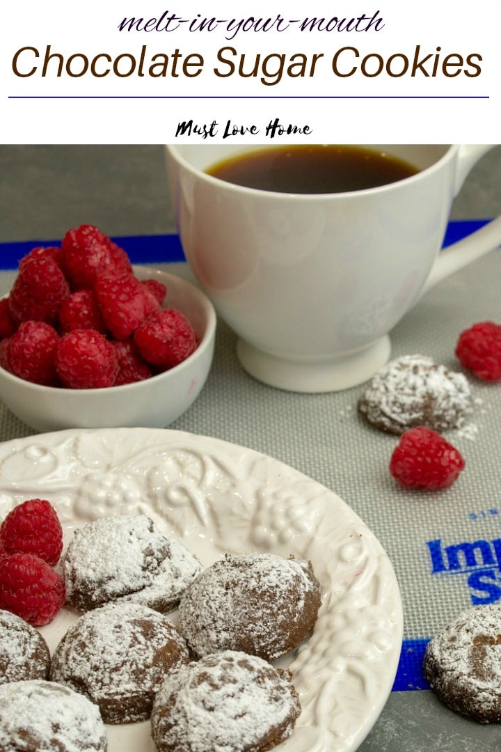 Delicate and sweet, Chocolate Melt In Your Mouth Sugar Cookies use only a handful of ingredients to produce a tender cookie that literally melts in your mouth. Perfect for holiday parties and gift giving!