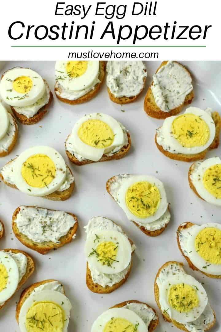 Easy Egg Dill Crostini Appetizer is so simple you will feel like you are cheating! Only 4 ingredients and 15 minutes to make appetizers for a crowd! Great for holiday parties!