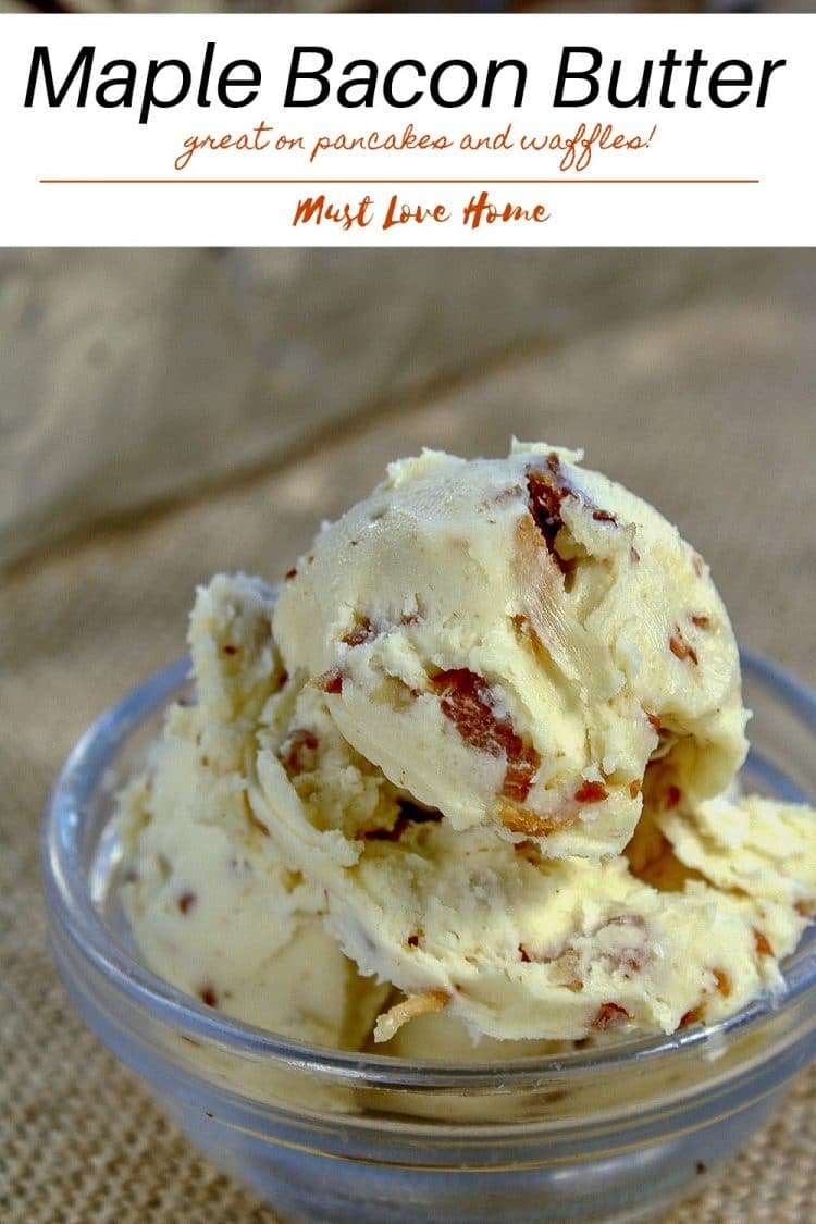 Maple Bacon Butter, a sweet and savory combination of maple syrup, crispy bacon and unsalted butter is perfect for serving with savory breads or hot cakes.