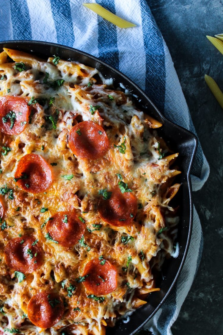 ONE PAN CHICKEN PEPPERONI PIZZA PASTA