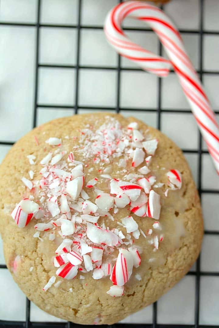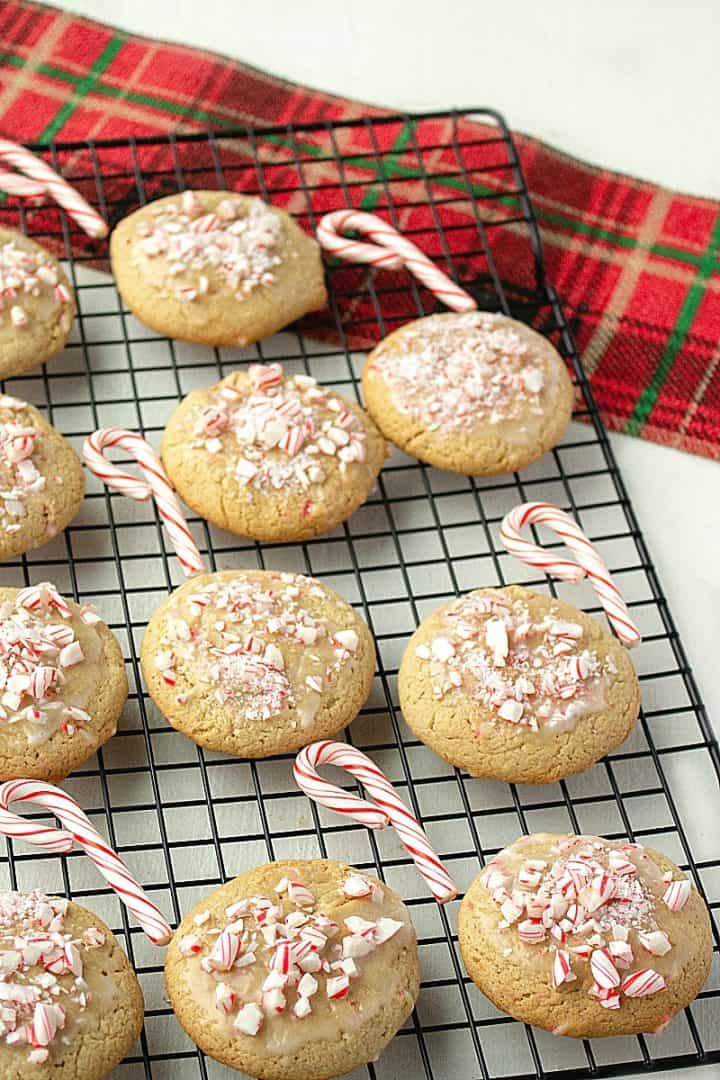 Work quickly when glazing the cookies – the glaze hardens fast. Re-glaze if the glaze has hardened and the peppermint won’t stick.