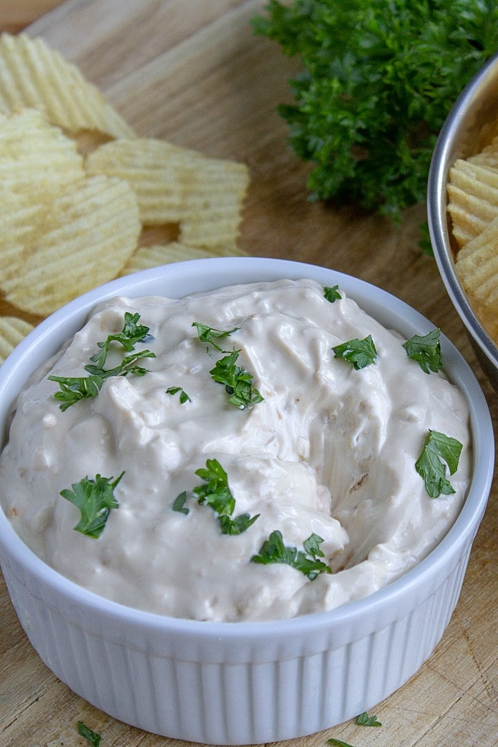 When I lived on a military base and my husband’s troops came over for our summer cookouts, they would call me beforehand and request this dip! That’s how I know it’s just as good when making one batch, or throwing down a vat of 5X that amount for our guests. Don’t even get me started on how many bags of chips we went thru!