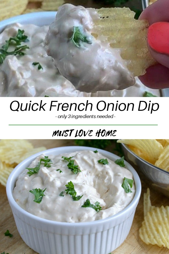 Quick French Onion Dip is amazingly easy to make with only 3 ingredients. One you taste this onion dip recipe, you will NEVER want the store bought kind again!
