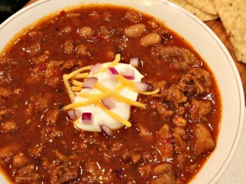There is nothing like a hot bowl of good chili! It’s chock full of ingredients that give this chili depth of flavor that you won’t believe. There are the usual ingredients, like meat, tomato paste and chili powder, But theres also the unexpected like corn flour for thickening, brown sugar for maple sweetness and apple cider vinegar for subtle tartness.
